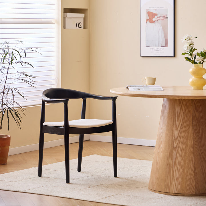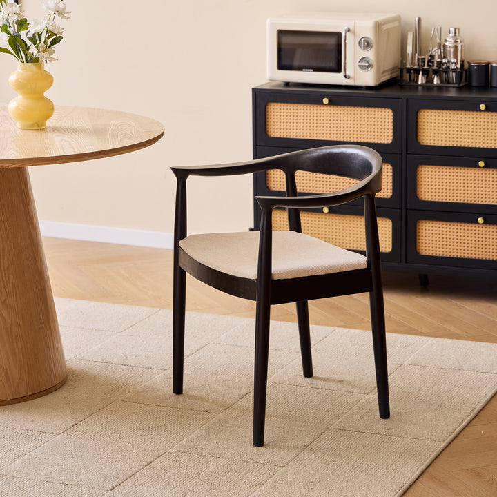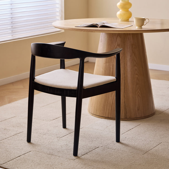 Der Stuhl SALTA vereint skandinavischen Stil, Komfort und Langlebigkeit, um Ihrer Einrichtung einen zeitlosen Touch zu verleihen. Er hat ein Gestell aus FSC-zertifiziertem Holz und einen beigen Stoffbezug. Die schwarze Holzoberfläche verleiht ihm einen eleganten und modernen Look und ist gleichzeitig pflegeleicht. Der Stuhl SALTA ist die perfekte Ergänzung zu Ihrem Esstisch oder Ihrer Leseecke und wird sich harmonisch in Ihre Einrichtung einfügen.