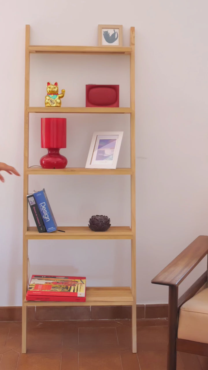 Das SMOGEN Leiter-Wandregal aus natürlichem Massivholz ist ein Möbelstück im skandinavischen Stil, das Ihrer Einrichtung einen Hauch von zeitlosem Design verleihen wird. Aus hochwertigem Kiefernholz gefertigt, bietet das Regal nicht nur einen eleganten Look, sondern auch eine lange Lebensdauer. Mit einer maximalen Gewichtsbelastung von 20 kg pro Regalboden bietet es Ihnen die Möglichkeit, Ihre Lieblingsgegenstände sicher zu präsentieren. Die braune Farbe und das lackierte Finish verleihen Ihrer Einrichtung eine warme Note. Dieses Regal ist FSC-zertifiziert, um eine verantwortungsvolle Waldbewirtschaftung zu gewährleisten, und vereint Komfort und Umweltschutz. Dank seiner einfachen Pflege können Sie dieses praktische und ästhetische Möbelstück in vollen Zügen genießen. Das Regal SMOGEN ist ideal, um Ihre Bücher, Pflanzen oder Dekorationsgegenstände zur Geltung zu bringen, und passt perfekt in ein Wohnzimmer, ein Schlafzimmer oder sogar ein Badezimmer. Entscheiden Sie sich für Qualität und Stil mit diesem Wandregal mit natürlichem und authentischem Charme. Dieses Produkt enthält Holz, ein natürliches Material, dessen Farbton je nach Lichteinfall leicht variieren kann.