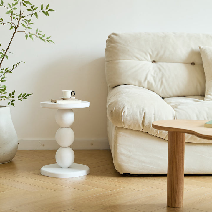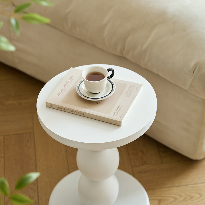 Der runde Beistelltisch GAVLE ist die perfekte Wahl, um Ihrer Einrichtung einen Hauch von skandinavischem Stil zu verleihen. Seine weiße Farbe und die lackierte Holzoberfläche verleihen ihm ein zeitloses Design, das sich perfekt in jede Einrichtung einfügt. Der Tisch ist FSC-zertifiziert und vereint Komfort, Langlebigkeit und Pflegeleichtigkeit, was ihn zu einem praktischen und ästhetischen Möbelstück für Ihr Wohn- oder Schlafzimmer macht. Auf diesem Tisch können Sie Bücher, Fernbedienungen oder Kaffeetassen einfach ablegen und Ihrem Wohnraum eine warme Note verleihen. Entscheiden Sie sich für die Qualität und den Stil des Tisches GAVLE, ein Muss für eine raffinierte und harmonische Dekoration.