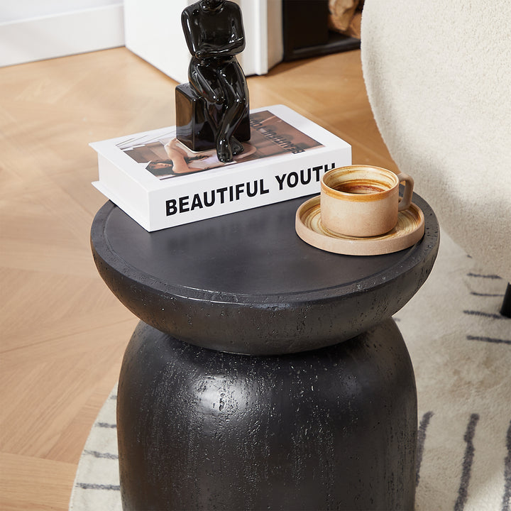Der Beistelltisch HJORRING ist ein Möbelstück im skandinavischen Stil, das Langlebigkeit mit zeitlosem Design verbindet. Seine schwarze Farbe und das Magnesitmaterial verleihen ihm ein modernes und pflegeleichtes Aussehen. Ausgestattet mit einem Qualitätszertifikat und einer lackierten Oberfläche passt er perfekt in alle Arten von Innen- und Außenbereichen. Der Tisch HJORRING ist die ideale Ergänzung zu Ihrer Einrichtung und die perfekte Wahl, um Ihrem Wohnbereich einen Hauch von Raffinesse zu verleihen. Ein unverzichtbares Stück, um Ihre Dekorationsgegenstände zur Geltung zu bringen oder einfach nur, um Ihre Kaffeetasse abzustellen. Dieser Beistelltisch vereint Zweckmäßigkeit und Ästhetik für eine gelungene Einrichtung.