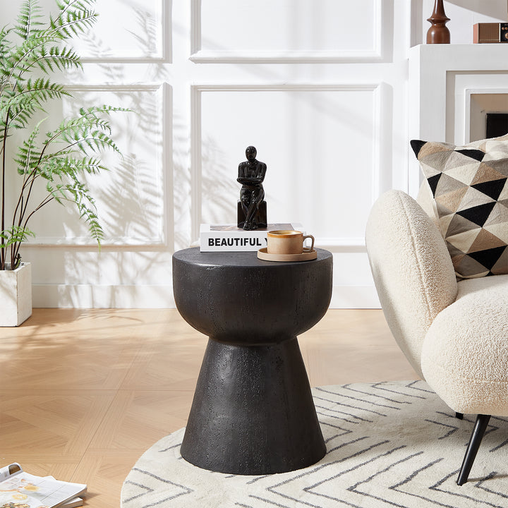 Der Beistelltisch SORSELE ist ein Möbelstück im skandinavischen Stil, das Langlebigkeit mit zeitlosem Design verbindet. Seine schwarze Farbe und das Magnesitmaterial verleihen ihm ein modernes und pflegeleichtes Aussehen. Ausgestattet mit einem Qualitätszertifikat und einer lackierten Oberfläche passt er perfekt in alle Arten von Innen- und Außenbereichen. Der Tisch SORSELE ist ideal, um Ihre Dekoration zu vervollständigen und ist die ideale Wahl, um Ihrem Wohnbereich einen Hauch von Raffinesse zu verleihen. Ein unverzichtbares Stück, um Ihre Dekorationsgegenstände zur Geltung zu bringen oder einfach nur, um Ihre Kaffeetasse abzustellen. Dieser Beistelltisch vereint Zweckmäßigkeit und Ästhetik für eine gelungene Einrichtung.