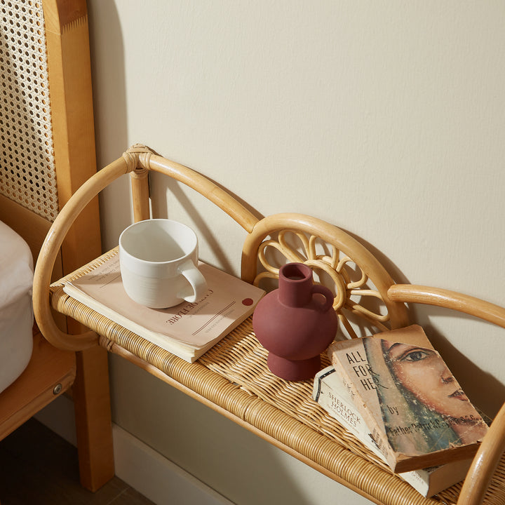 Entdecken Sie unser wandhängendes Aufbewahrungsregal aus natürlichem Rattan, das Ihrer Einrichtung einen Hauch von skandinavischem Stil verleiht. Mit seiner Designplatte ist dieses Regal praktisch und ästhetisch zugleich. Seine natürliche Farbe und das Material aus Rattan verleihen ihm sowohl Langlebigkeit als auch Pflegeleichtigkeit. Das Regal ist für seine Qualität zertifiziert und verfügt über eine lackierte Oberfläche für ein zeitloses Design, das sich perfekt in jede Art von Einrichtung einfügt. Entscheiden Sie sich für dieses wandhängende Aufbewahrungsregal, um zusätzlichen Stauraum zu schaffen und gleichzeitig einen Hauch von Wärme und Authentizität in Ihren Raum zu bringen.