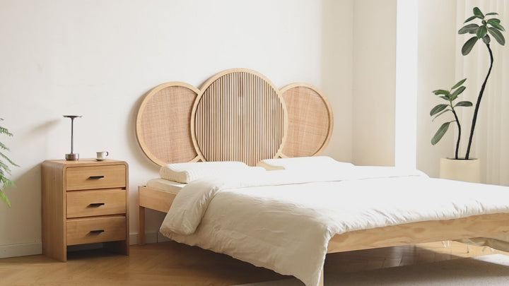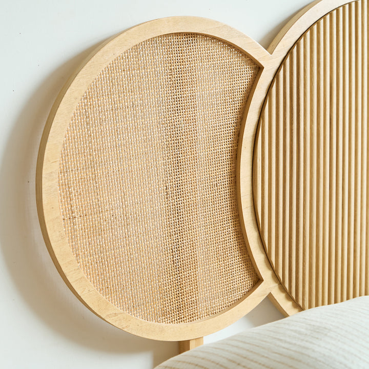 Das Kopfteil 160 BODO aus Massivholz und natürlichem Rattan ist die perfekte Balance zwischen Komfort, Haltbarkeit und zeitlosem Design. Mit seinem eleganten skandinavischen Stil verleiht es Ihrem Schlafzimmer einen Hauch von Wärme und Authentizität. Das Kopfteil wird aus Esche hergestellt und ist daher besonders robust und langlebig. Die braune Farbe verleiht dem Kopfteil einen modernen Touch und lässt sich gleichzeitig leicht mit jeder Art von Dekoration kombinieren. Dank der FSC-Zertifizierung können Sie sicher sein, dass es nachhaltig und umweltfreundlich ist. Die Lackierung erleichtert zudem die Pflege und sorgt dafür, dass das Holz auch im Laufe der Zeit seinen Glanz behält. Gönnen Sie sich mit dem Kopfteil BODO einen komfortablen und stilvollen Schlafplatz.