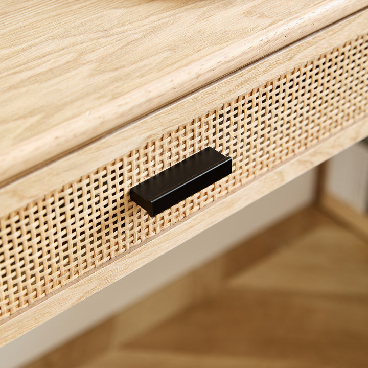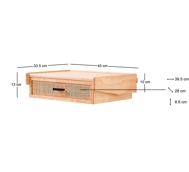 Der hängende Nachttisch PITEA ist ein Möbelstück im skandinavischen Stil, das Ihrem Schlafzimmer einen modernen Touch verleihen wird. Der aus Holz gefertigte Nachttisch ist robust und elegant zugleich mit seiner lackierten Oberfläche. Seine natürliche Farbe wird Ihrer Inneneinrichtung einen warmen Touch verleihen und das Rohrgeflecht sorgt für einen Hauch von Originalität. Dieser Nachttisch ist FSC-zertifiziert und somit auch umweltfreundlich. Seine Pflege ist einfach und schnell, so dass Sie lange Freude an seinem zeitlosen Design haben werden. PITEA ist ein praktisches und ästhetisches Möbelstück, das perfekt zu Ihrem Bett passt und auf dem Sie Ihre Alltagsgegenstände ablegen können und das leicht seinen Platz in Ihrem Schlafzimmer finden wird. Genießen Sie eine ruhige Nacht mit diesem hochwertigen Möbelstück, das Komfort, Haltbarkeit und Ästhetik vereint. Dieses Produkt enthält Holz, ein natürliches Material, dessen Farbton je nach Lichteinfall leicht variieren kann.