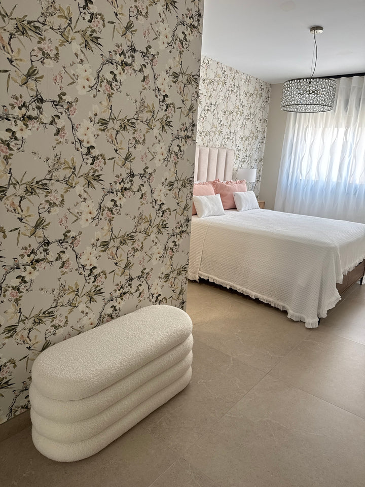 UPPSALA - Bank mit Aufbewahrung aus weißem Bouclé