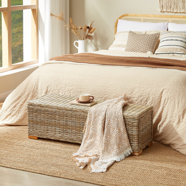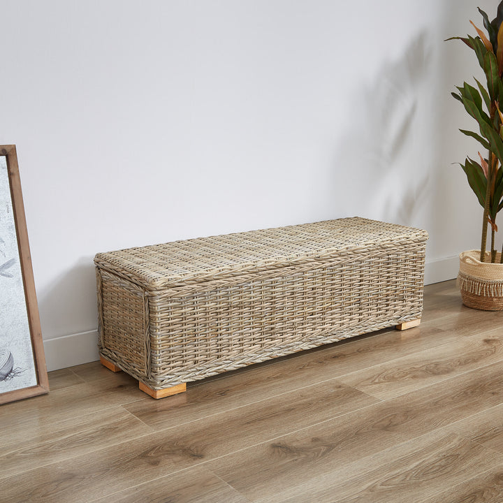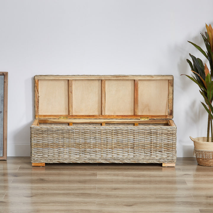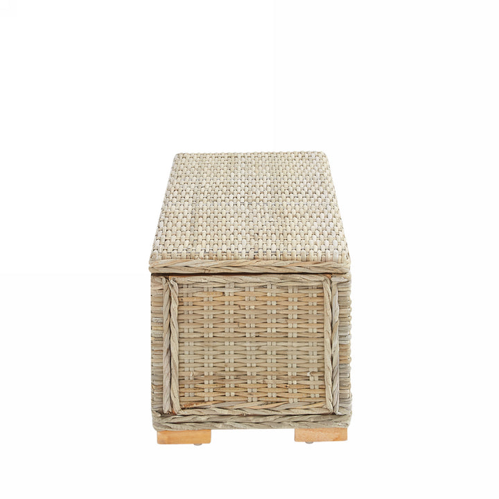 Die Eingangsbank Zimmer aus Holz und Rattan CUZCO ist ein Möbelstück im skandinavischen Stil, das Ihrer Einrichtung einen Hauch von Bohème verleihen wird. Mit einer Tragfähigkeit von bis zu 120 kg vereint sie Komfort und Langlebigkeit. Die aus Rattan und FSC-zertifiziertem Kiefernholz gefertigte Bank bietet außerdem praktischen Stauraum. Mit ihrer warmen braunen Farbe wird sich die Bank CUZCO perfekt in Ihre Einrichtung einfügen, sei es im Eingangsbereich, im Schlafzimmer oder im Wohnzimmer. Da sie sowohl Zweckmäßigkeit als auch Ästhetik bietet, ist dieses Möbelstück ideal, um eine natürliche und ethnische Atmosphäre in Ihrem Zuhause zu schaffen. Nutzen Sie den Charme und die Qualität dieser Eingangsbank, um Ihre Gäste elegant zu empfangen und gleichzeitig zusätzlichen Stauraum für Ihre alltäglichen Dinge zu haben. Dieses Produkt enthält Holz, ein natürliches Material, dessen Farbton je nach Lichteinfall leicht variieren kann.