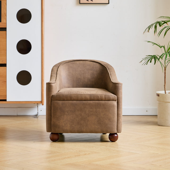 Der IVALO-Clubsessel ist ein Möbelstück im modernen Stil, das Komfort und Haltbarkeit miteinander verbindet. Der braune Sessel ist für ein maximales Gewicht von 120 kg ausgelegt und mit einem pflegeleichten Wildlederbezug versehen. Sein Gestell aus FSC-zertifiziertem Holz verleiht dem zeitlosen Design einen natürlichen Touch. Der Sessel ist ideal, um eine warme Atmosphäre in Ihrem Wohnzimmer zu schaffen. Er vereint Ästhetik und Zweckmäßigkeit, um Ihnen einen angenehmen Ort zum Entspannen zu bieten. Sein elegantes Aussehen und seine Holzverarbeitung machen ihn zu einem beliebten Möbelstück, das Ihrer Einrichtung einen modernen Touch verleiht. Genießen Sie wohlverdiente Momente der Entspannung in diesem Sessel mit seinem schlichten Stil, der sich perfekt in Ihre Einrichtung einfügen wird.