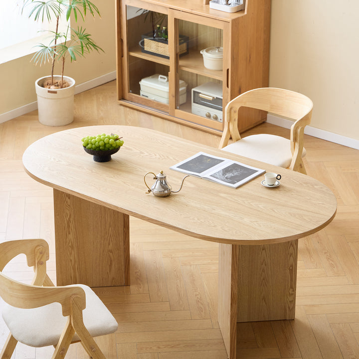 La table à manger 6 personnes (L180 cm) ovale SIRRKA est un meuble au style scandinave qui saura apporter confort et élégance à votre salle à manger. Fabriquée en pin de haute qualité et certifiée FSC, cette table allie durabilité et esthétique. Avec une capacité de charge maximale de 120 kg, elle peut accueillir en toute sécurité vos invités pour des repas conviviaux. Sa finition laquée lui confère un aspect élégant et facilite son entretien au quotidien. La couleur marron de cette table lui donne un charme chaleureux et intemporel qui s'adaptera à tout type de décoration. Son design épuré et ses lignes élégantes en font un meuble incontournable pour partager de bons moments en famille ou entre amis. Ce produit contient du bois, une matière naturelle dont la teinte peut varier légèrement selon la luminosité.