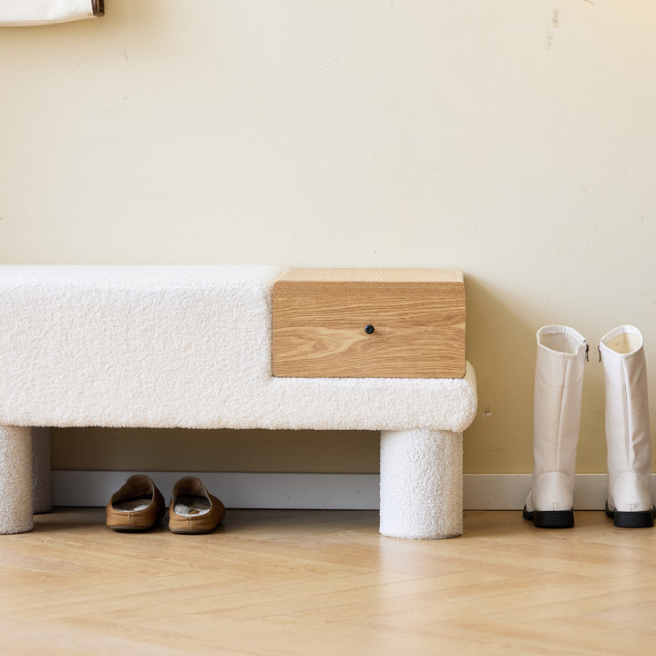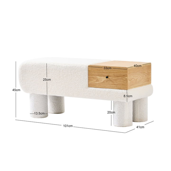 VADSO - Bank mit Aufbewahrung aus weißem Bouclé